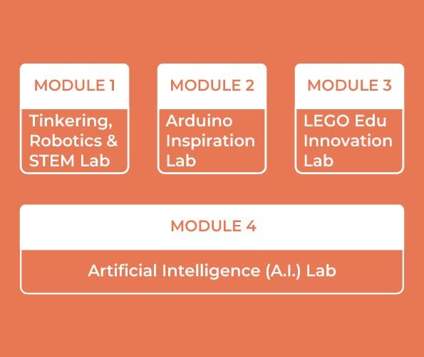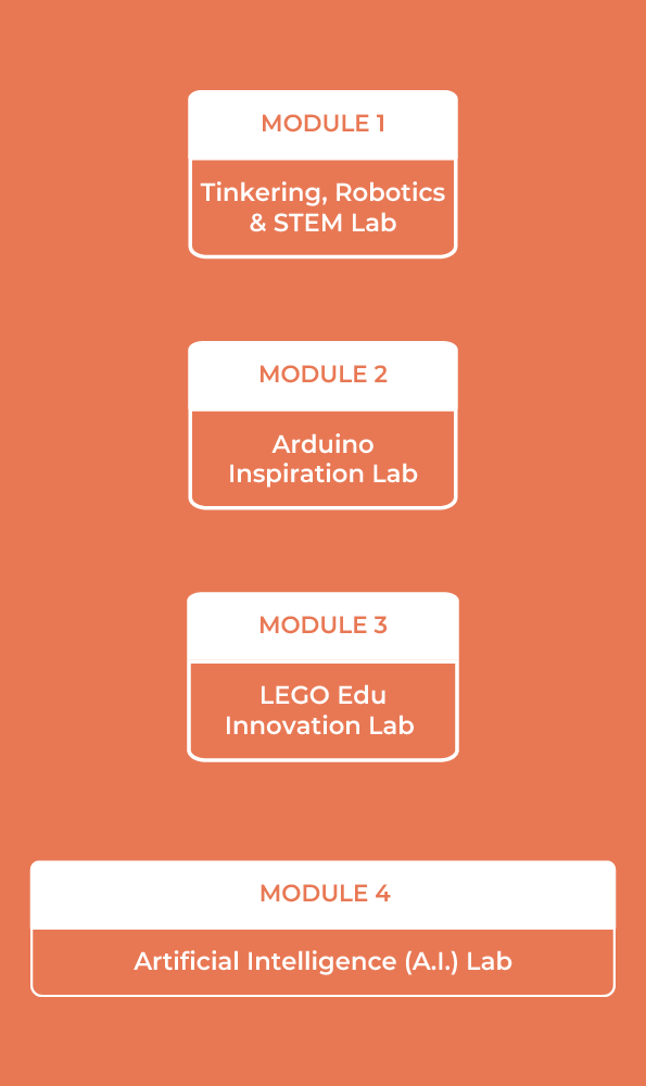 RoboGenius Future Leaders Lab empowers schools with world-class STEM, Robotics, and AI learning environments aligned with NEP 2020. Structured into four flexible modules STEM & Tinkering, Arduino, LEGO Education, and AI Labs it delivers hands-on learning through the unique 5C methodology. Each lab integrates structured curriculum, teacher training, and real-world projects to spark innovation, creativity, and future-ready skills in students.
